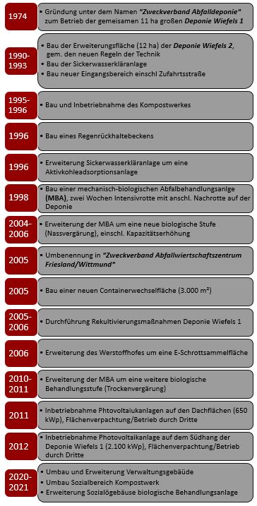 Ausgehend von einem ursprünglich reinen Betrieb einer gemeinsamen Deponie  entwickelte sich so im Laufe der Jahre am Standort Wangerland/Wiefels ein Abfallwirtschaftszentrum.